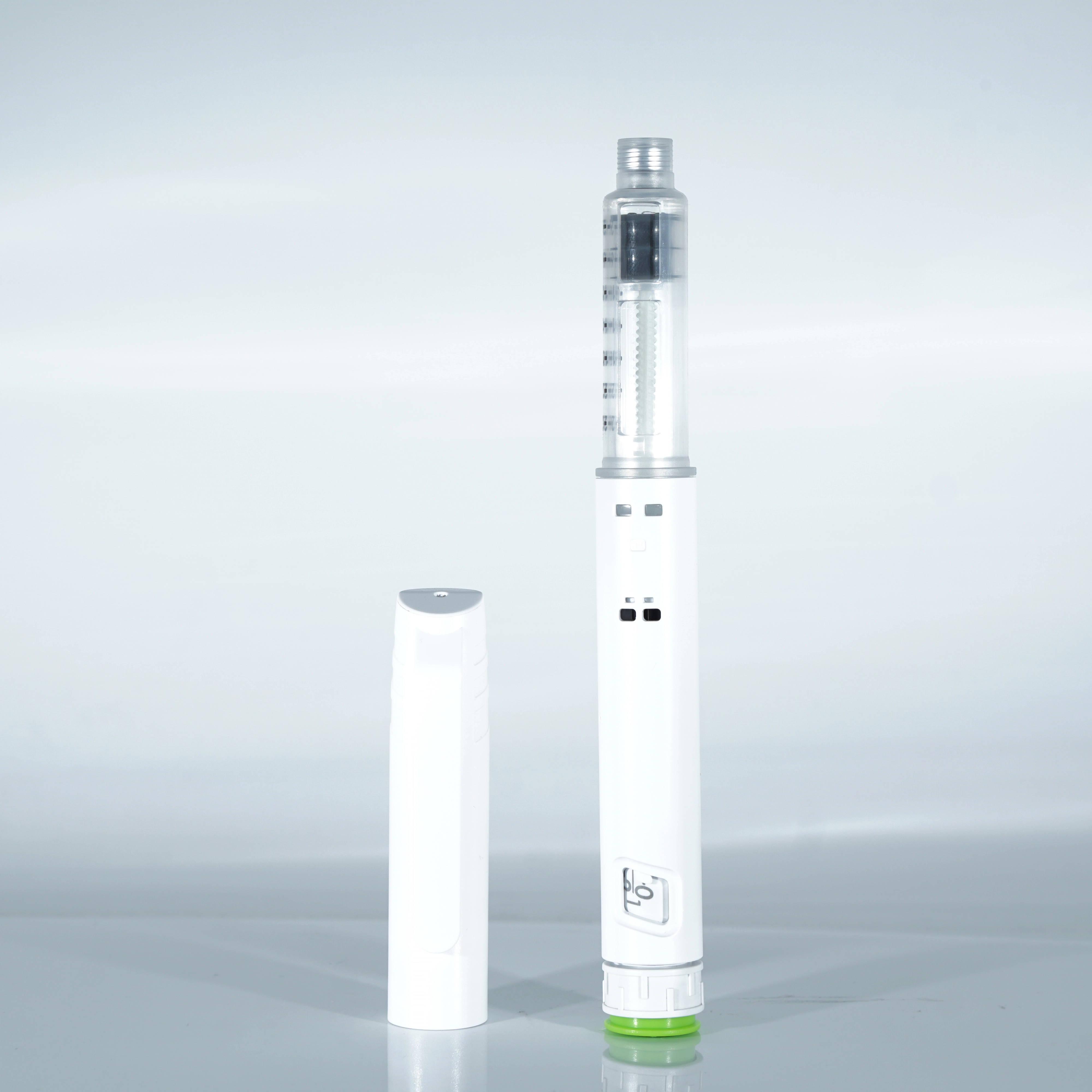 Эта модель сочетает в себе гладкий белый корпус с зеленой защитной крышкой для легкой идентификации. Компактный, готовый к использованию дизайн устраняет необходимость перезагрузки или очистки, что делает его идеальным выбором для клинических условий, аптек и самостоятельного введения на дому.